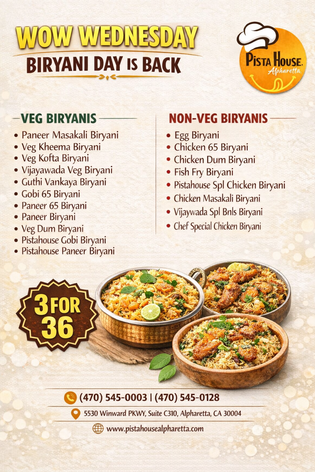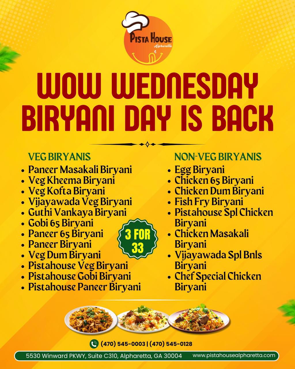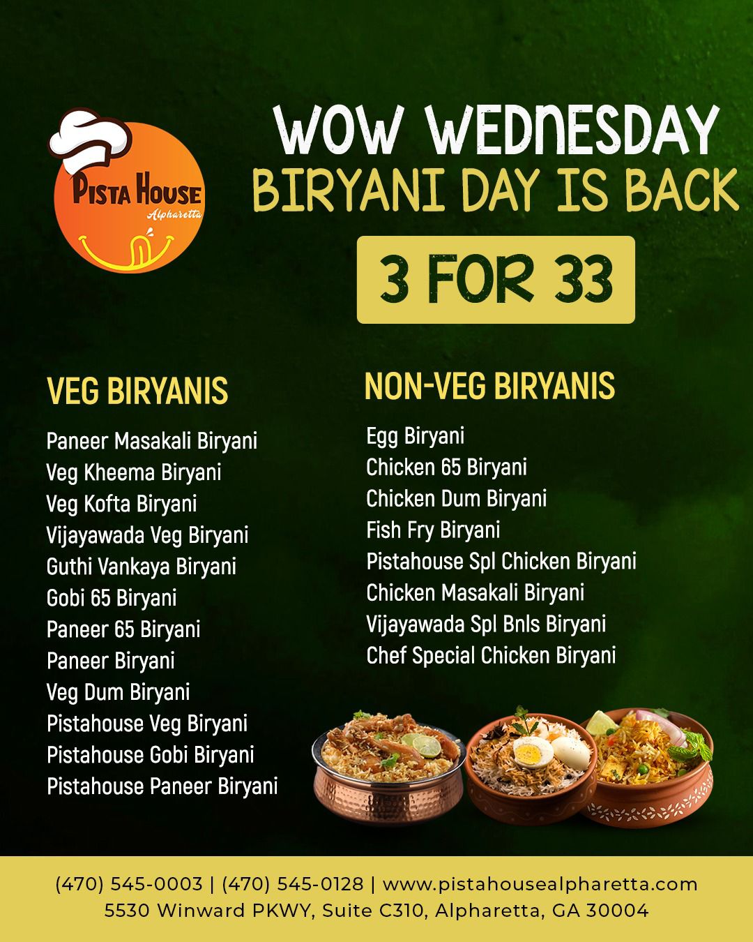 Pista House Alpharetta is known as one of the Best Indian Restaurants in Alpharetta, Georgia, as we serve the best Indian Food in Alpharetta. We have a unique recipe specially formulated by our master chefs from Hyderabad, and we are committed to bring in the exquisite taste of India. We do not compromise on the quality of ingredients used in our biryani or take shortcuts, as we are passionate about serving authentic Indian Food to our customers. We at Pista House Biryani’s Place, each recipe is prepared carefully under constant supervision. This attention to meticulous details is especially important as we want our customers to enjoy, not just well, but the best Indian food that are cooked perfectly.
